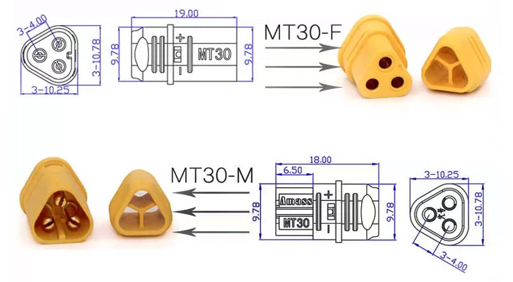 10/20/50Pairs Amass MT30 Connector Plug Female And Male Gold Plated For RC Lipo Battery Parts Quadcopter Multicopter