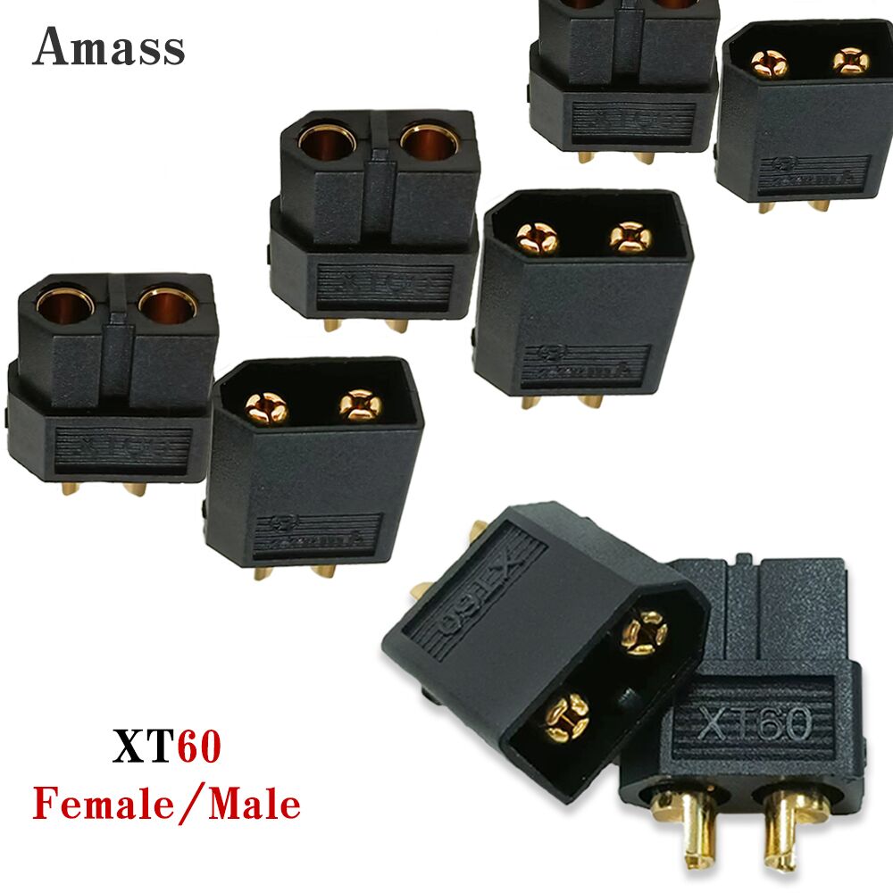 Amass XT60 Black Male Female Brass Golden Plated Bullet Connectors Plugs For RC Lipo Battery Quadcopter Multicopter