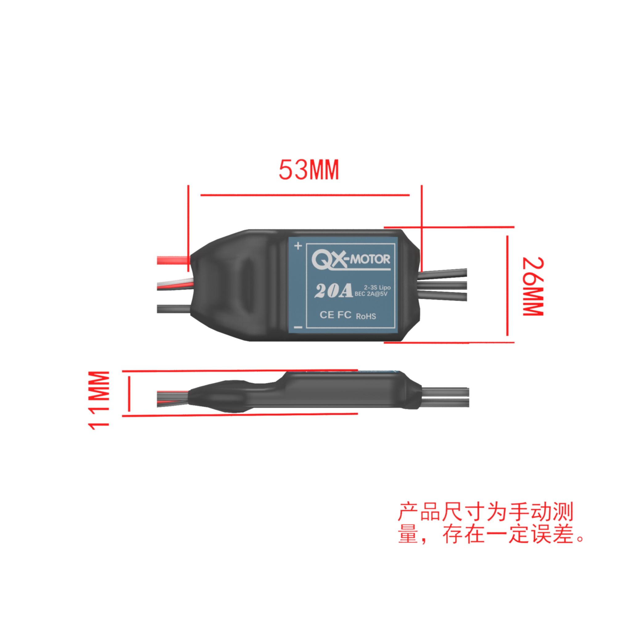 20A | 20A | 25A | Linear | 5V/2A | 5 servos | 4 servos | 2-3S | 5-9 cells | 19g | 42x25x8 |