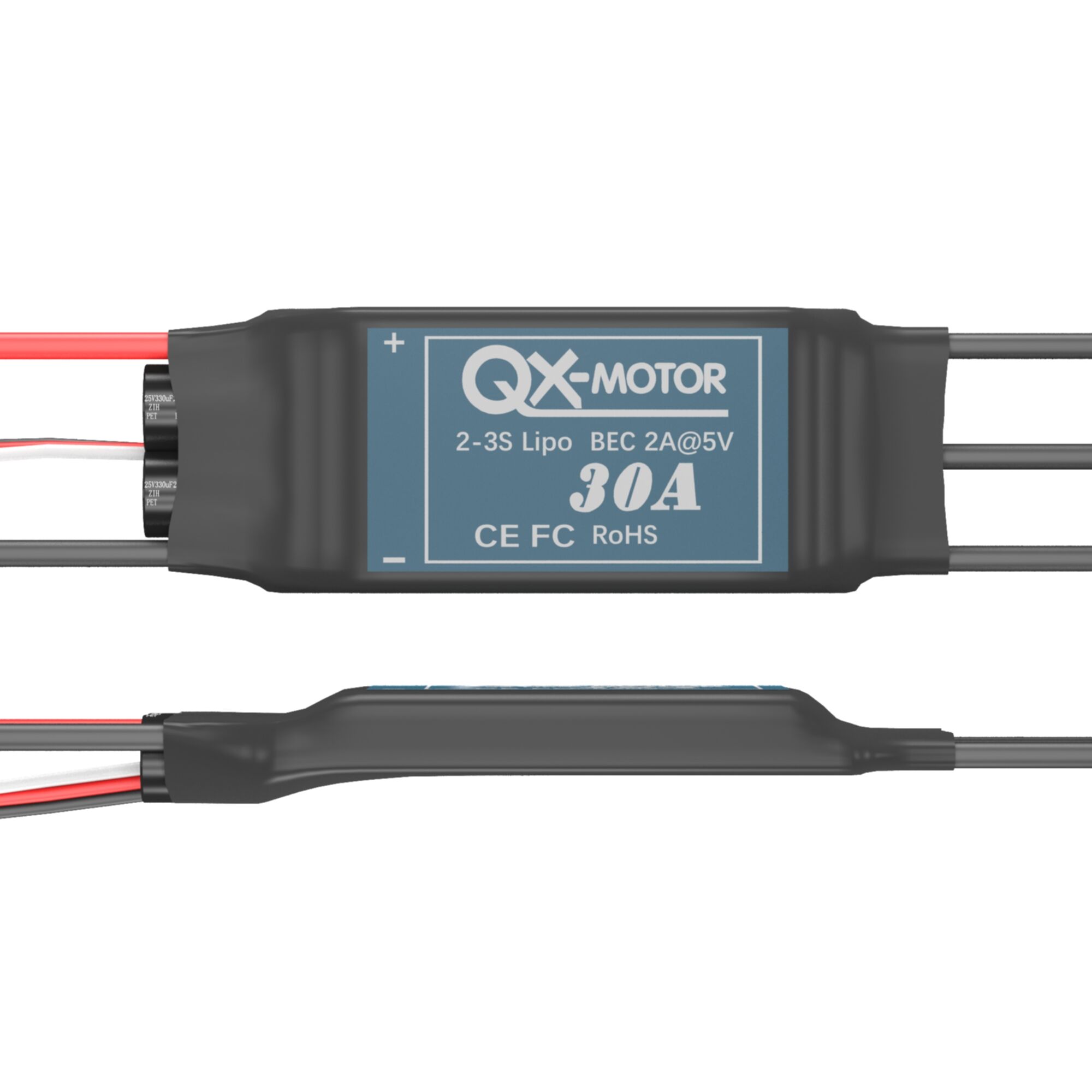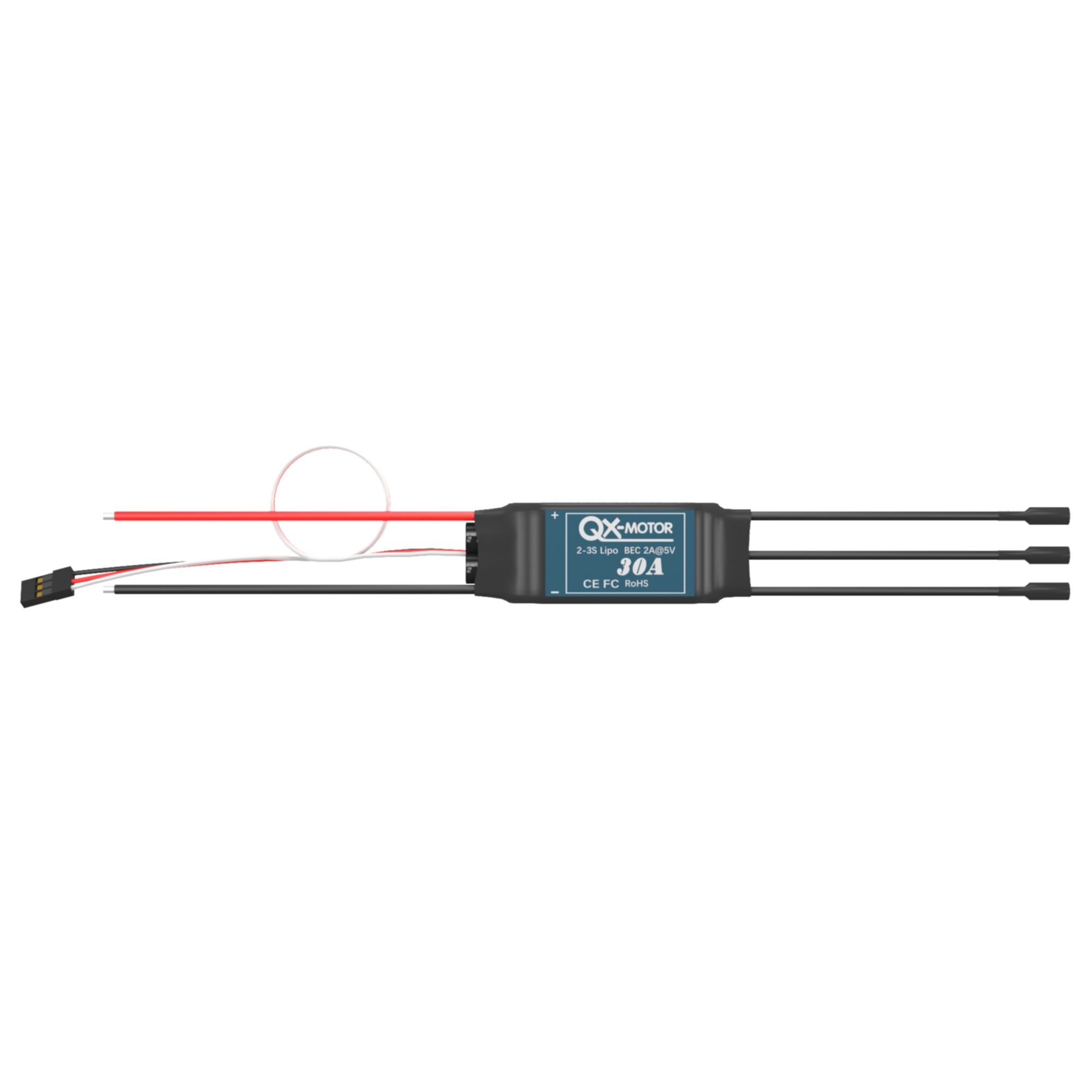 | 30A | 30A | 40A | Linear | 5V/2A | 5 servos | 4 servos | 2-3S | 5-9 cells | 37g | 68x25x8 | ||
