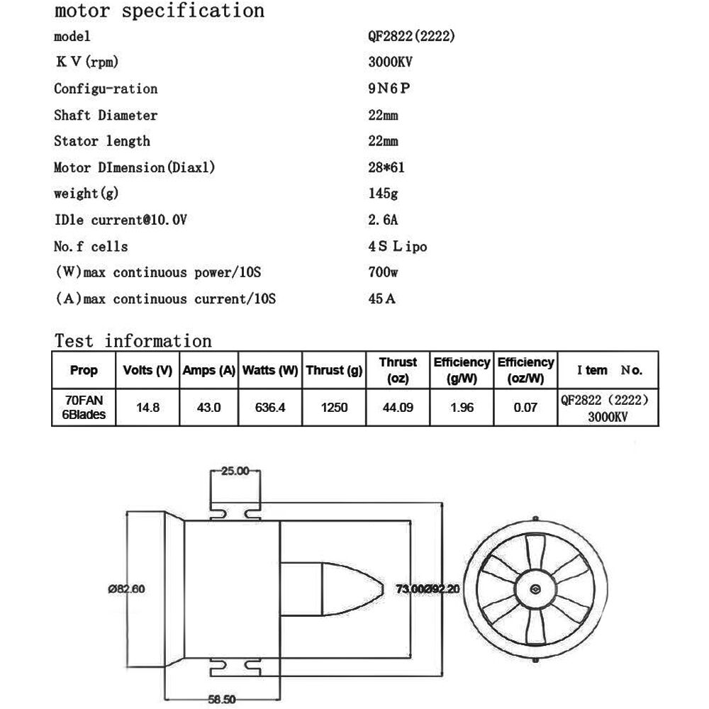 QX-MOTOR 70mm EDF 6 Blades Ducted Fan with QF2822 3000KV Brushless Motor