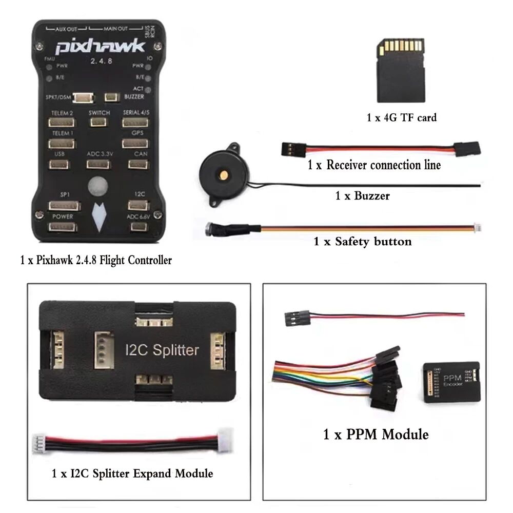 8. 1pcs PIXHAWK 2.4.8 Flight Controller/4G TF card/Receiver connection line/Buzzer /Safety button/ PPM Module /I2C Splitter Expand Module